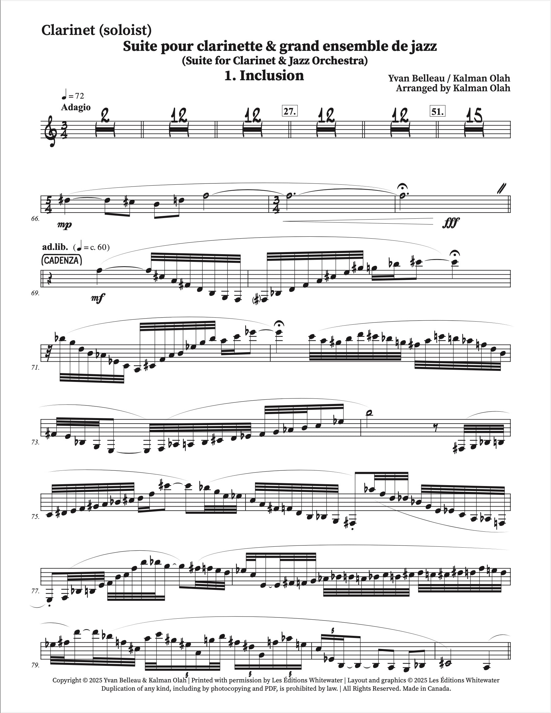 Suite for Clarinet and Jazz Orchestra - 1. Inclusion - Yvan Belleau / Kálmán Oláh