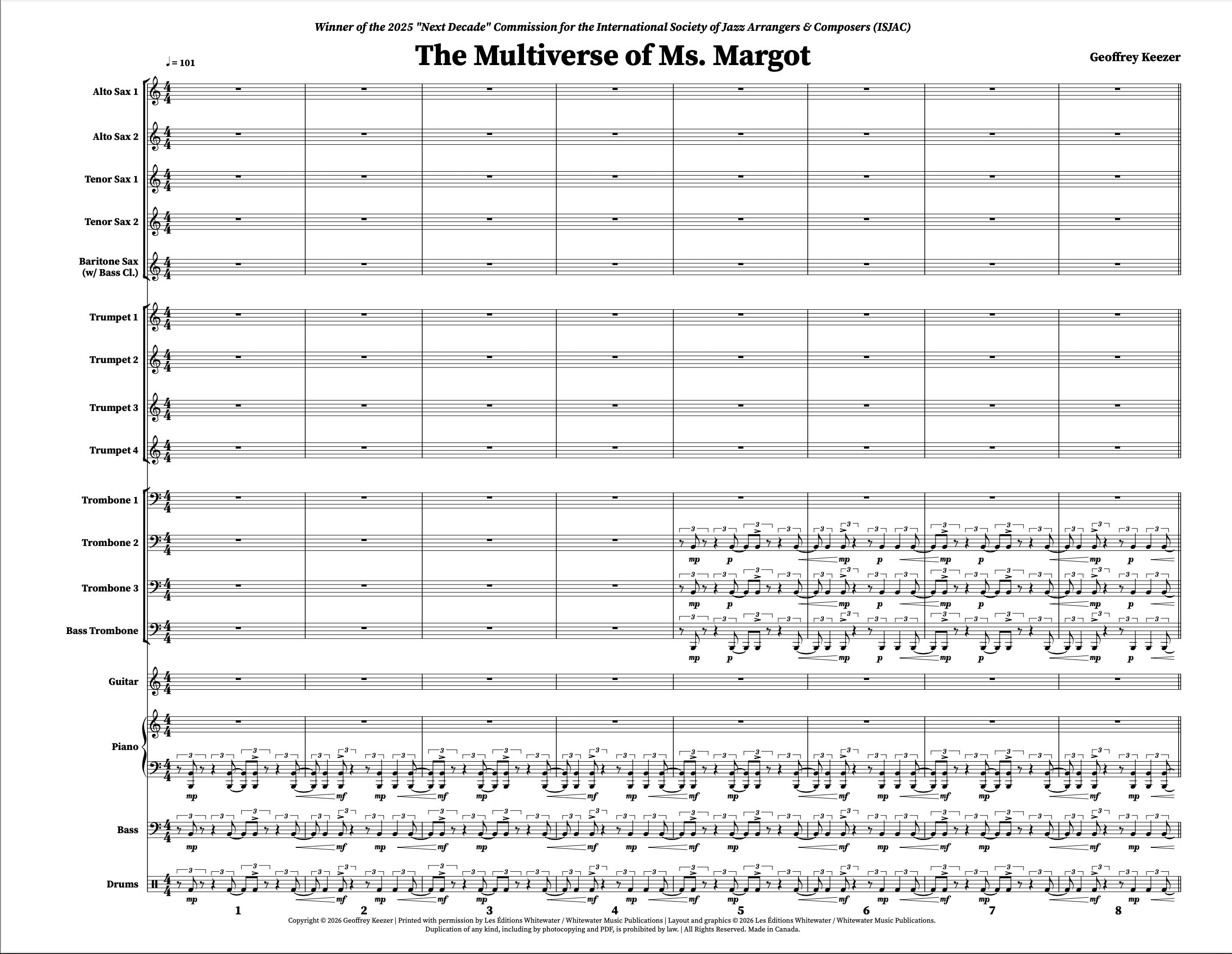 This creative extended work for jazz orchestra by Geoffrey Keezer was the winner of the 2025 "Next Decade" Commission from the International Society of Jazz Arrangers and Composers (ISJAC).