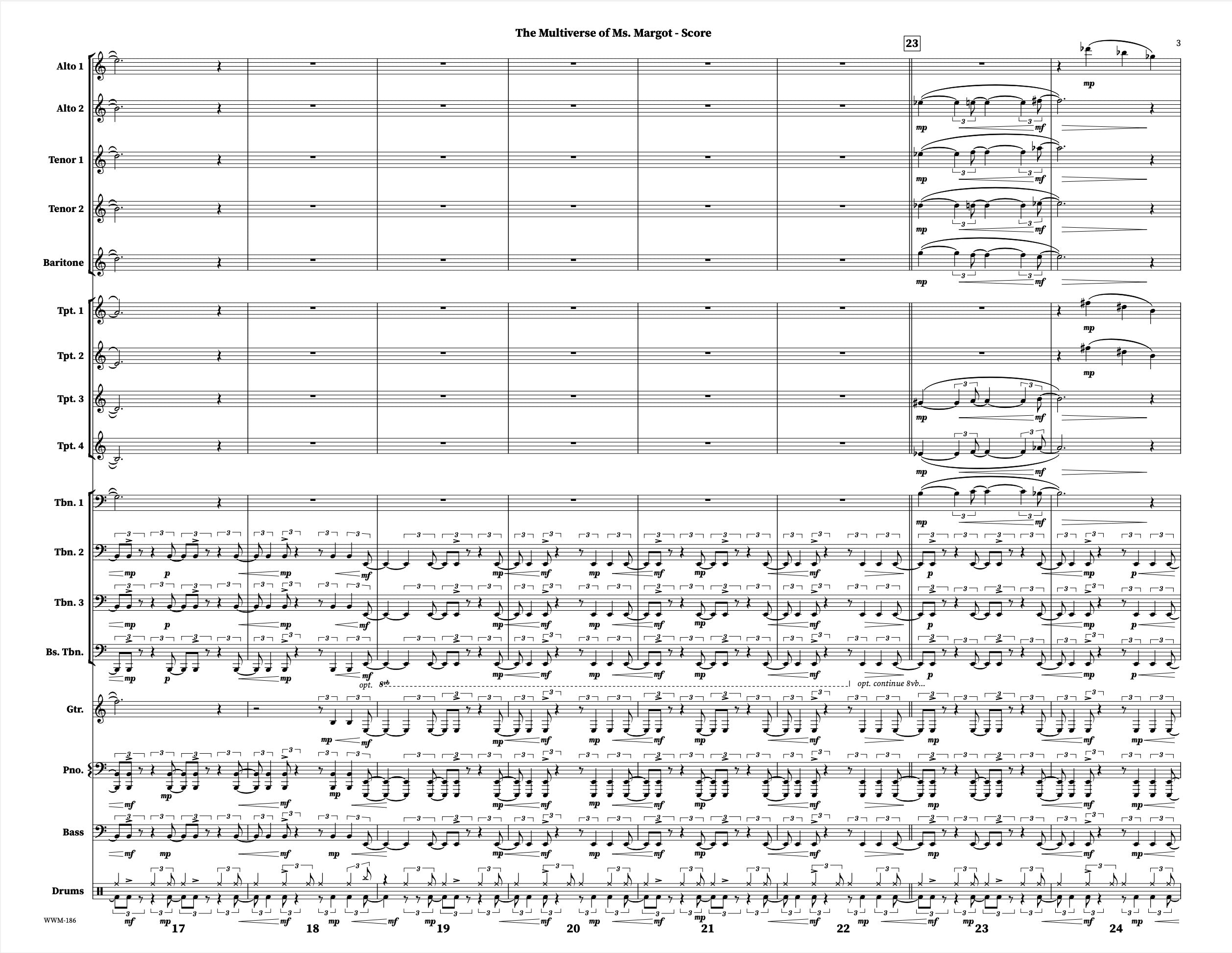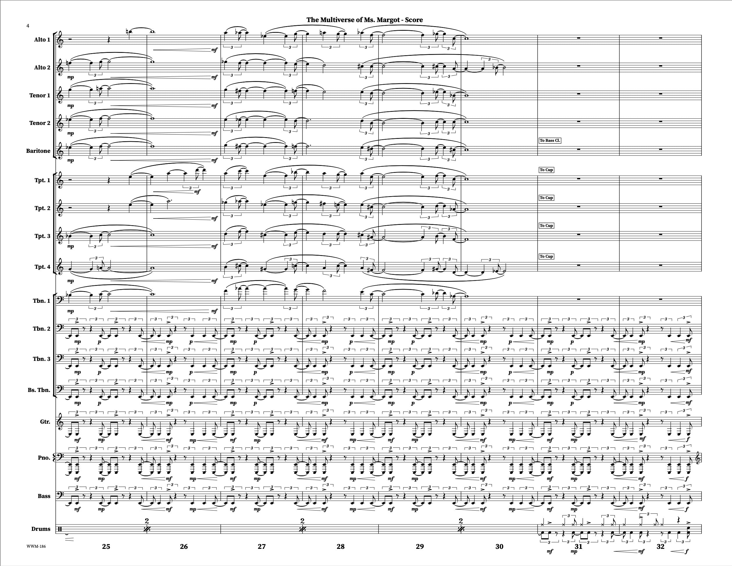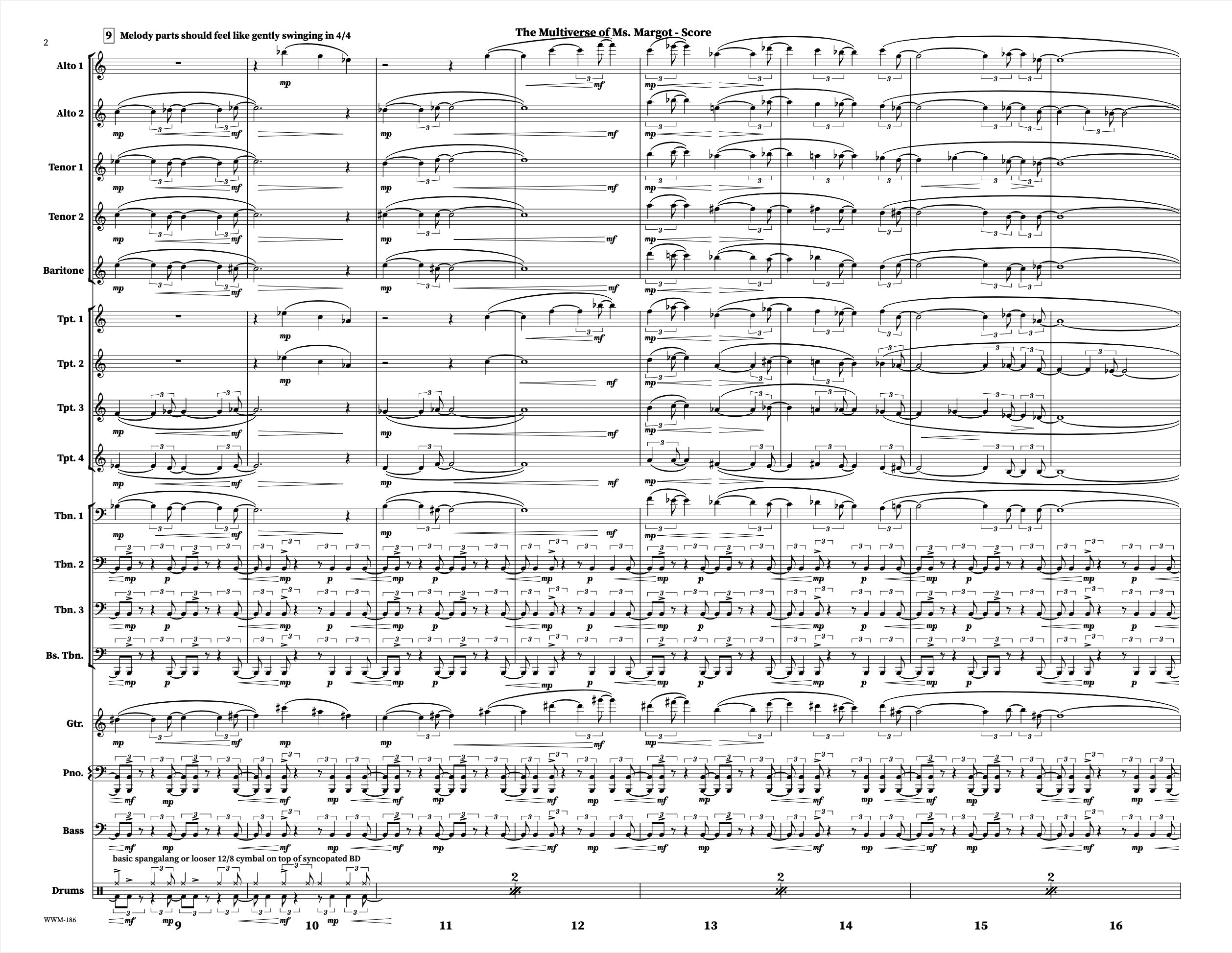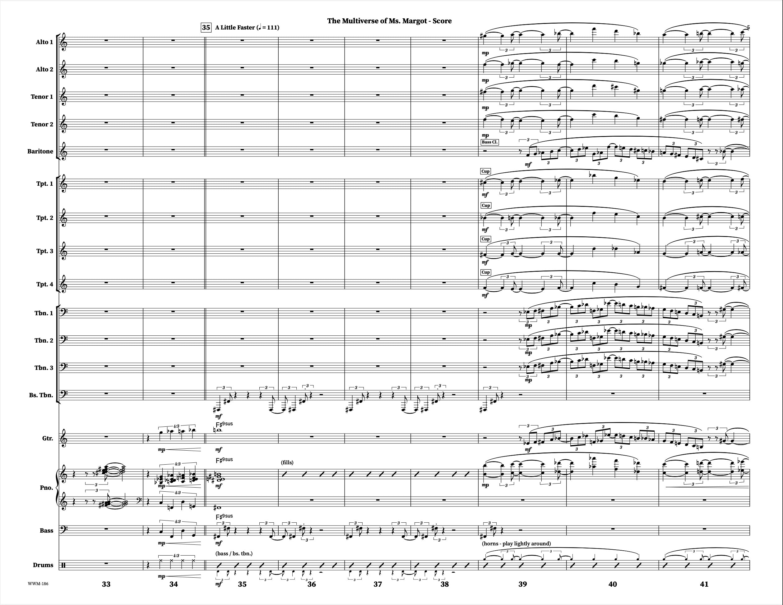 A composition in several parts, the piece features solo space for alto sax, guitar, piano, bass & drums, and plenty of challenging and exciting material for the full ensemble.
