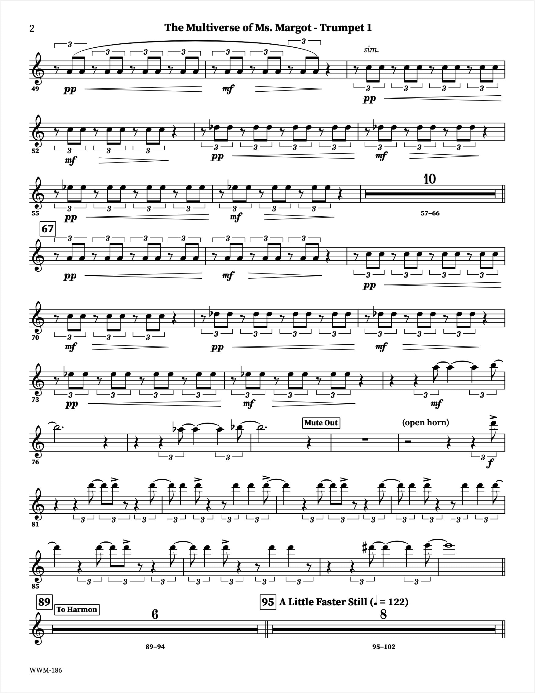 Range: Trumpet 1 to F (written), Trumpet 2 to Db (written)